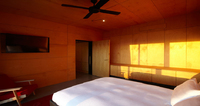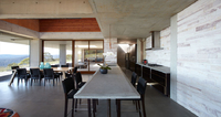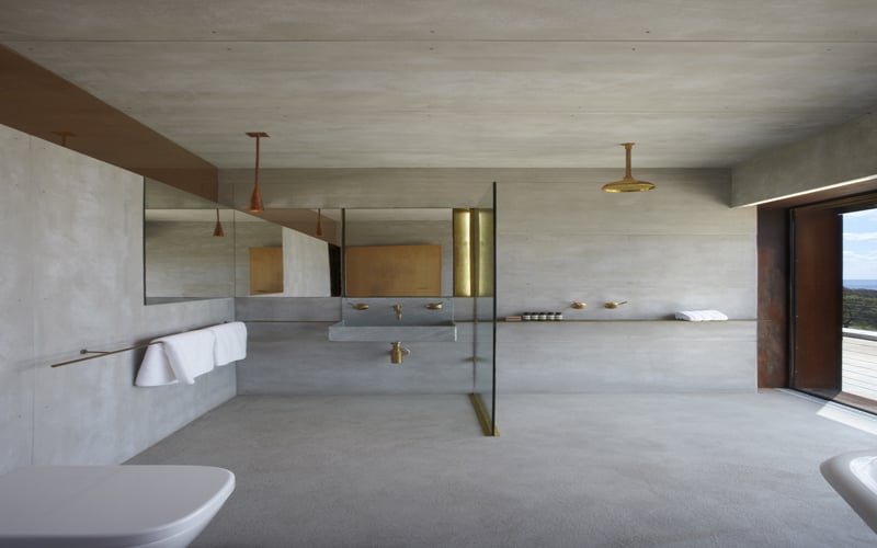 The interiors of Angel Wing are a unique blend of futuristic living and high-market indulgence. Designed over three years by renowned architect Peter Stutchbury, the property celebrates the elements of nature it is embedded in. After rainfall, the skylight catches the water and performs as a prominent design feature; a natural movement of water on the roof filters the light seeping into the house, creating a dramatic effect and a play on light. Being a contemporary design, the concept of open-plan living and spacious rooms are present. Our favourite chambers of Angel Wing is where the open fireplace is found - cosy up to roast marshmallows over a naked flame and listen to the native Banksias as they echo a melody in the woods.