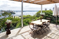 For the perfect private short-term luxury getaway with stunning Sydney Harbour views, this light and bright two bedroom apartment spans the entire top floor of a unique 1930's Sydney home. Walking distance to the city through Rushcutters Bay, this charming boutique rental property has a huge deck which overlooks a large private garden. The perfect north-west aspect, which is protected from the prevailing winds, spans the width of the property and showcases the beautiful views. The sunsets are especially breathtaking as they overlook Sydney Harbour where the bridge, ferries and sailing yachts dominate.